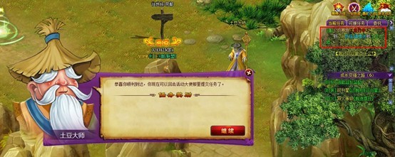 2. 领取任务后,活动大使指定一个其他势力的土豆大师npc,玩家需要自行变身火鸡后跨越指定势力地图到达指定的土豆大师处(镇鬼关帝都入口前)与其对话,再返回活动大使处交任务,限时5分钟