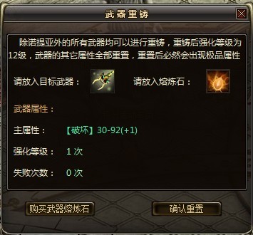 9、任何一件装备,都只能强化失败两次,第三次强化失败时武器就会破碎掉(即消失)。
