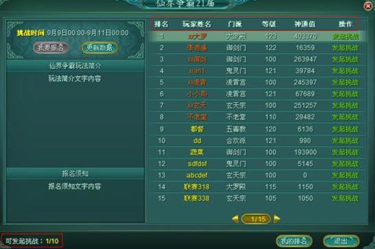 挑战规则:玩家列表每日可挑战次数为50次,但是只能挑战比自己高10名内的玩家。