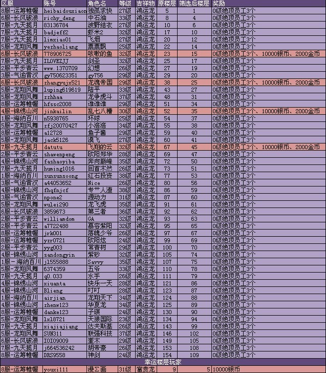 2.重复发帖的玩家取消当天活动资格,楼层顺延
